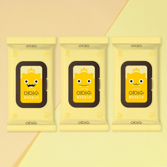 아이수 옐라잇 몬스터 엠보형 유아 물티슈 캡형 70매 10개
