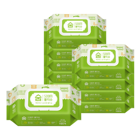 • Soom 숨 깨끗한 물티슈 캡형 휴대용 아기 100매 x 10팩